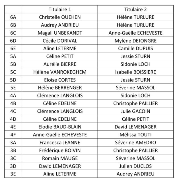 Vos représentants par conseil de classe: