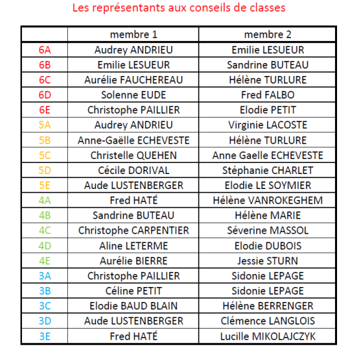 Vos représentants par conseil de classe: